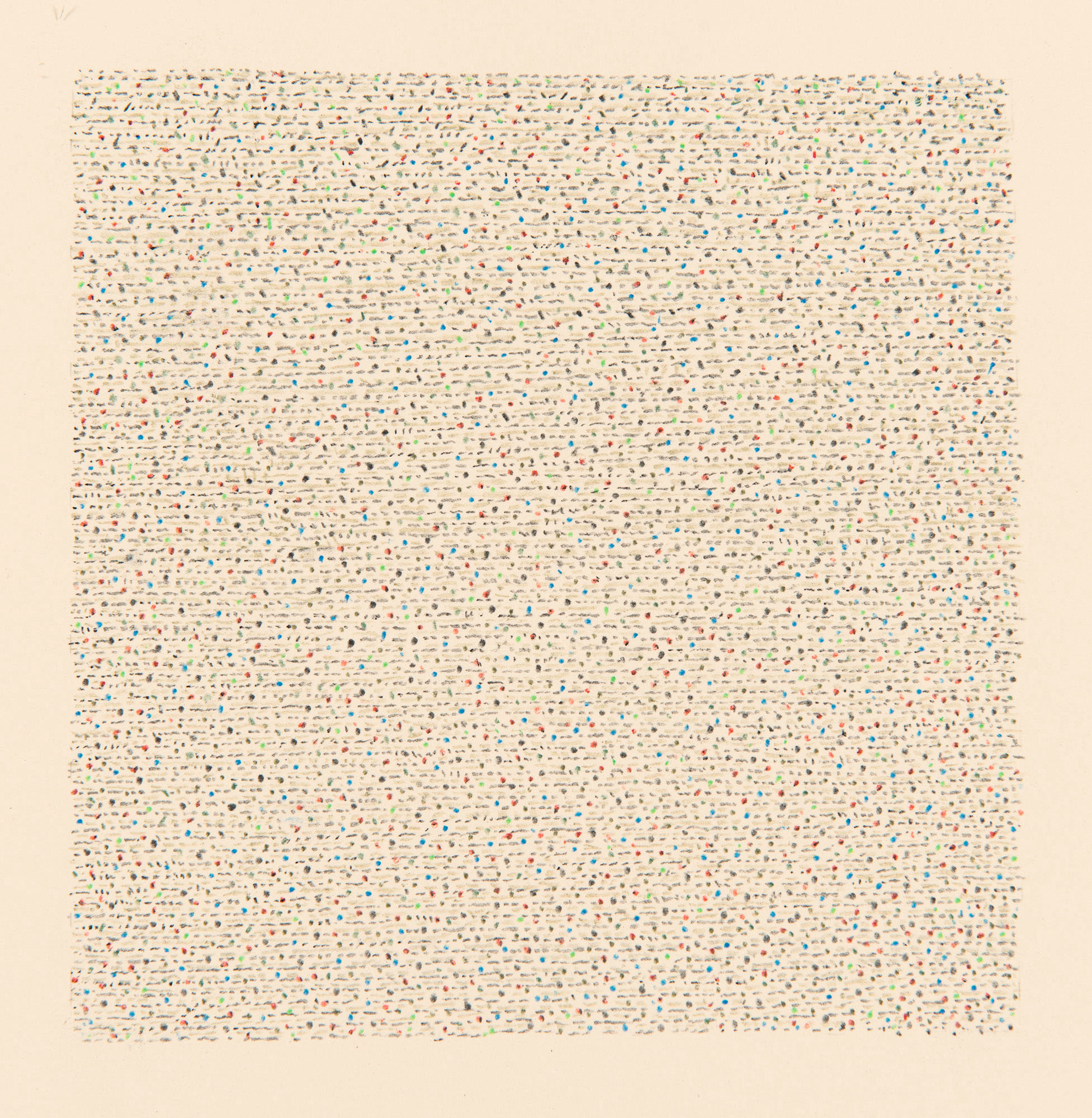 Trio 2013 3, 2013, Crayons de couleur (13,6 x 13,6 cm) sur vélin d’Arches 44,5 x 44,5 cm.